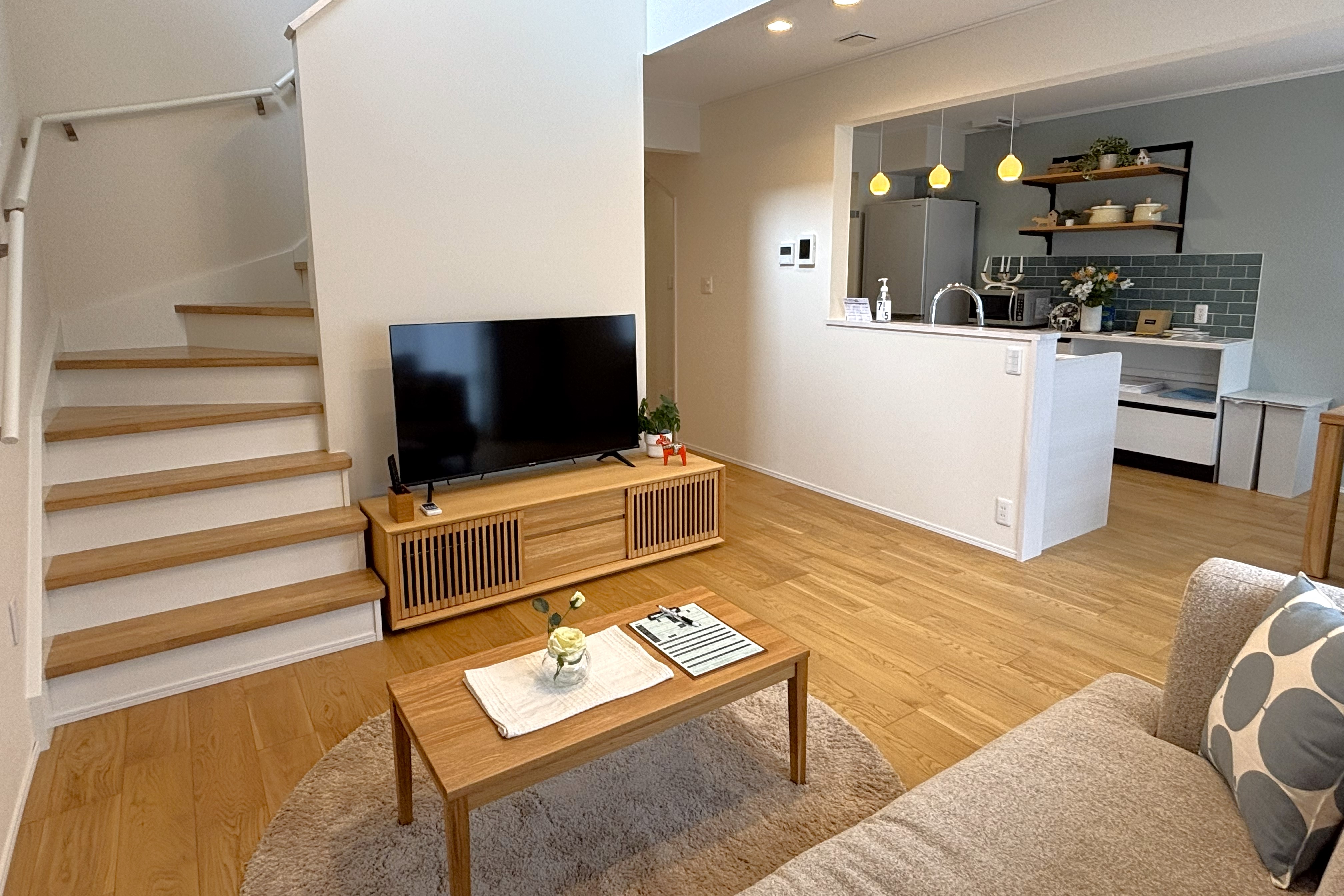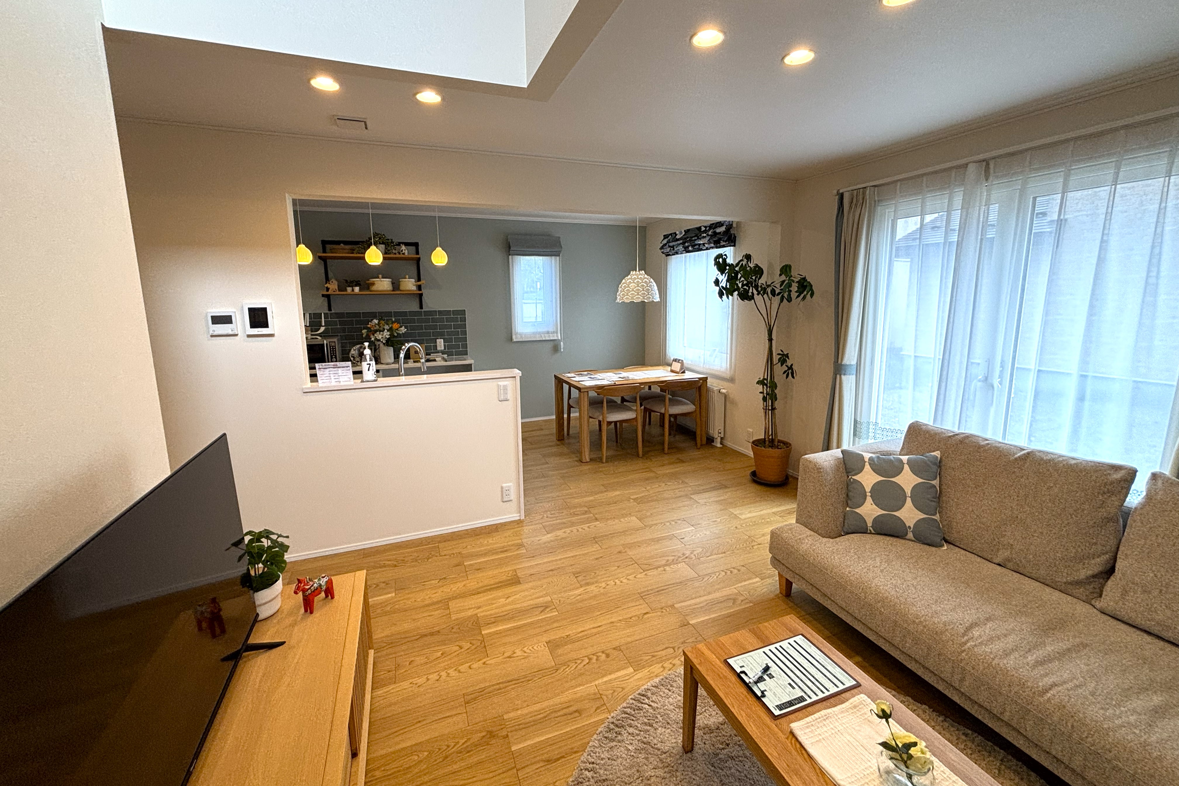 | 設備 | 暖房=ガス(エコジョーズ)、給湯=ガス(エコジョーズ)、キッチン=IHクッキングヒーター、その他=エアコン(リビング+主寝室)、食洗器・室内物干し(ランドリールーム)、ガス衣類乾燥機、24時間換気システム、TVドアホン |