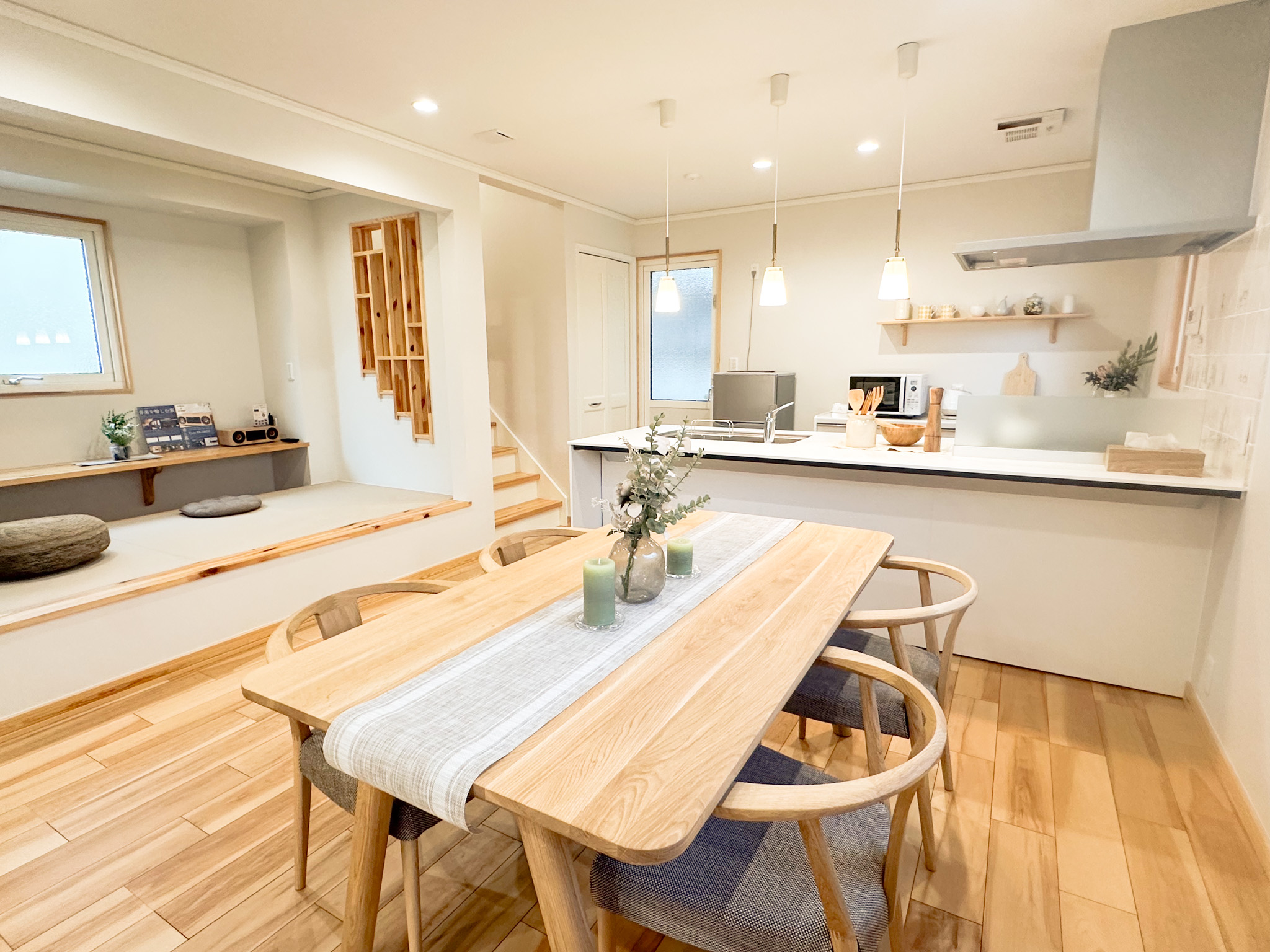| 設備 | システムキッチン・食器洗い乾燥機・エコキュート・エアコン・洗面台・1階2階トイレ・カーテン・照明・24時間換気システム |