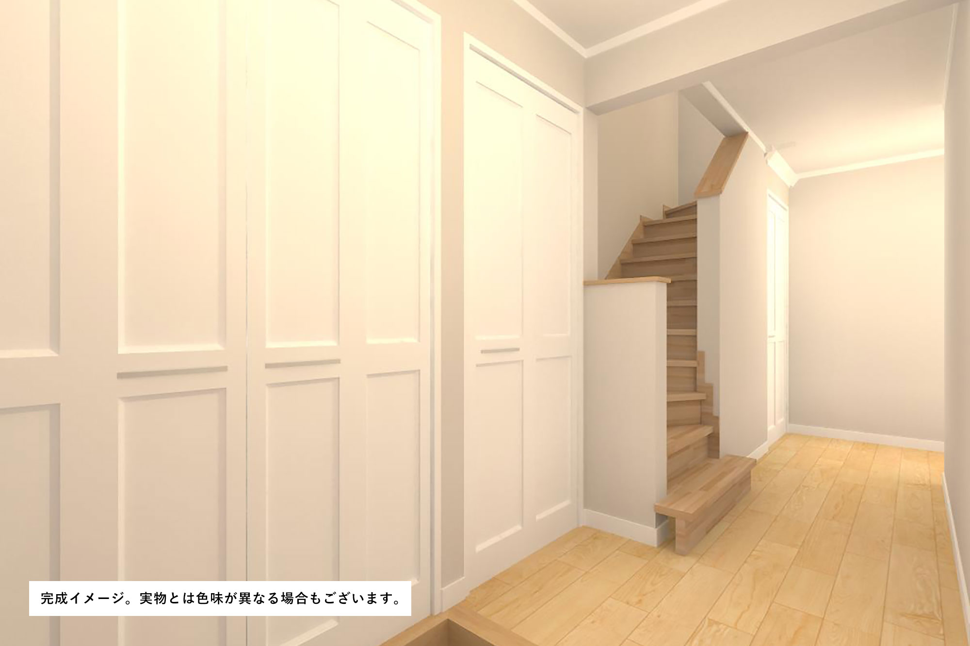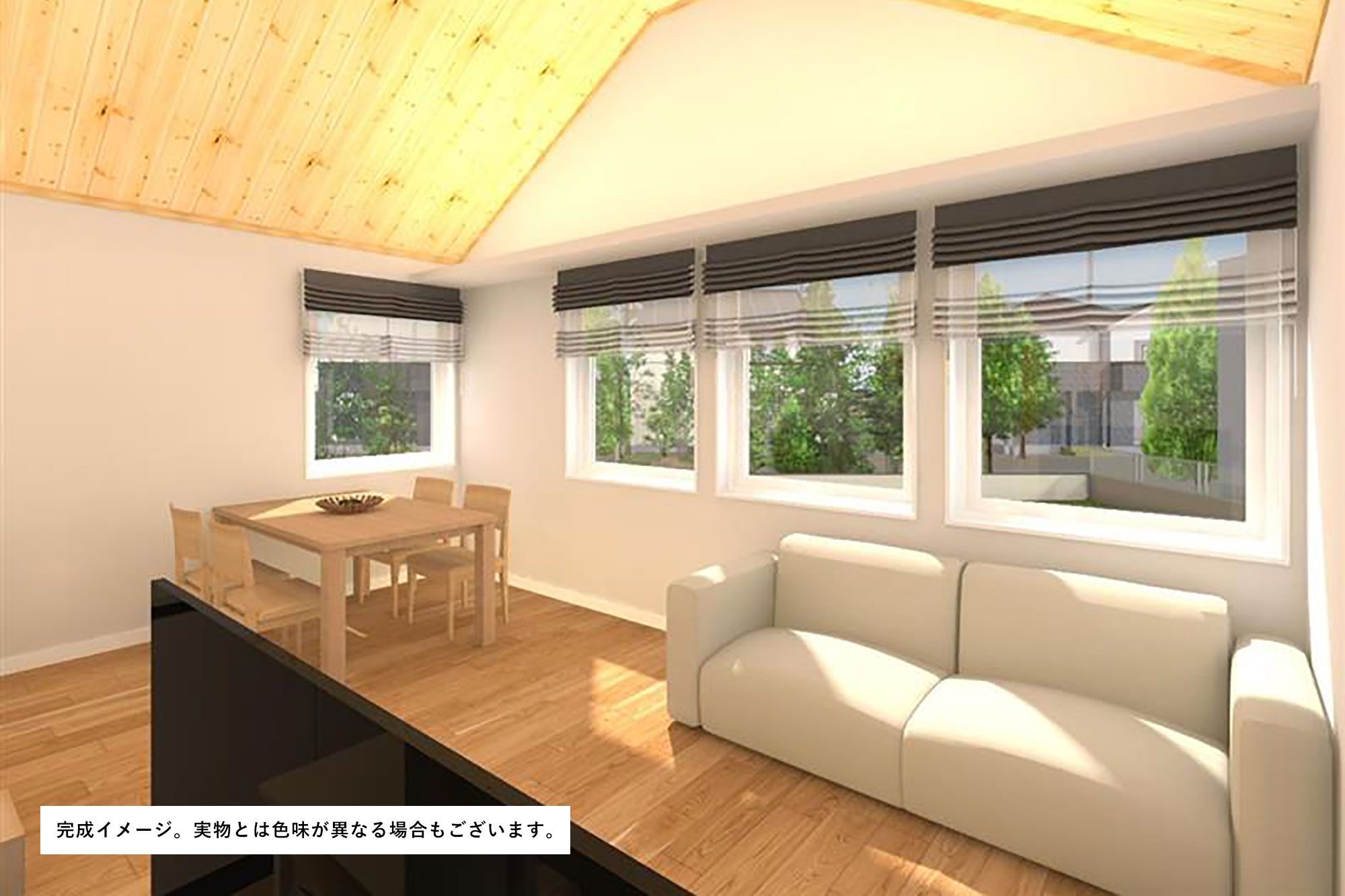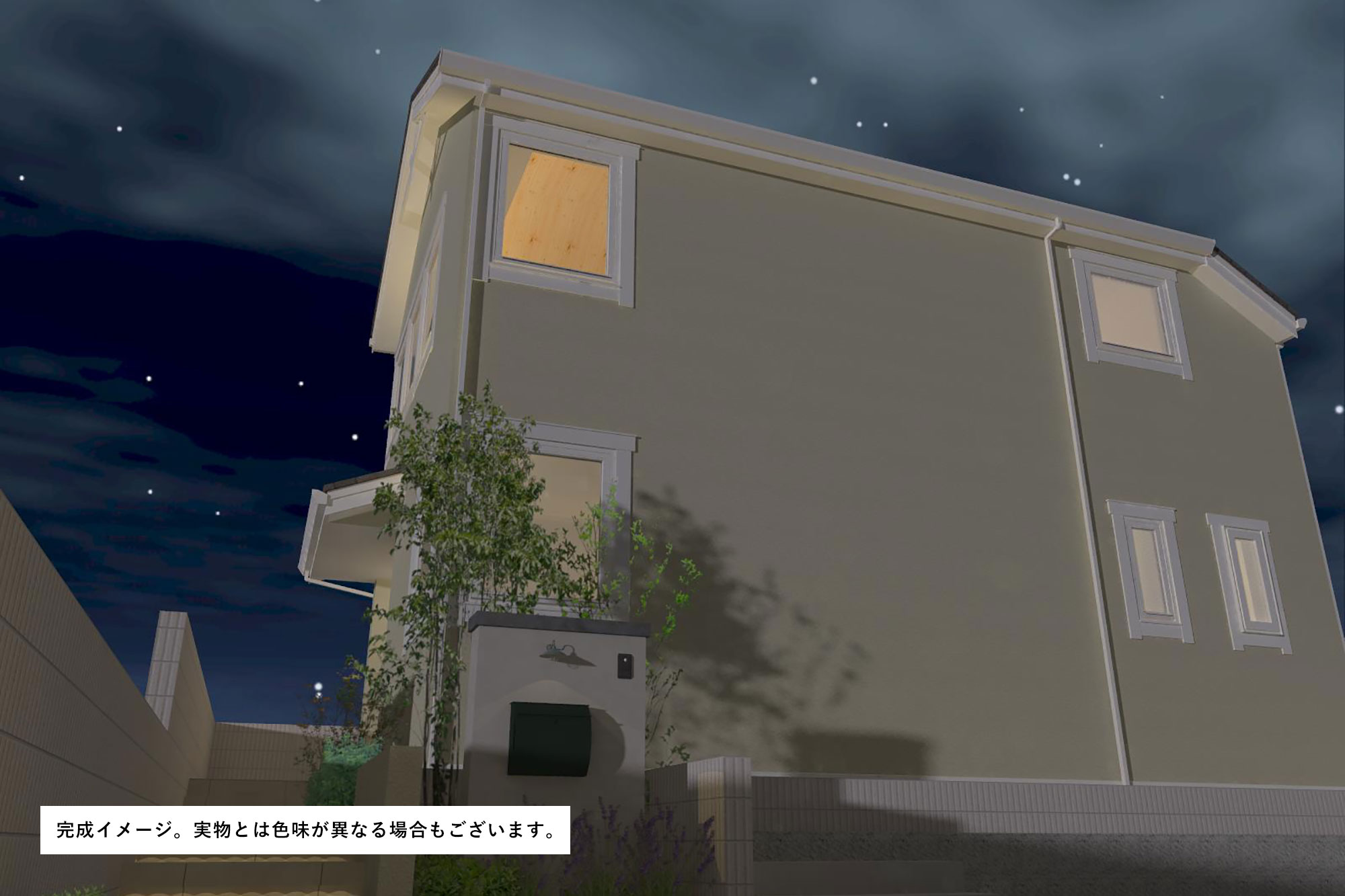 | 設備 | 冷暖房:エアコン3台、給湯:エコキュート、キッチン:IH、その他:食洗器、24時間換気システム、TVドアホン、外構、カーテン、照明 |