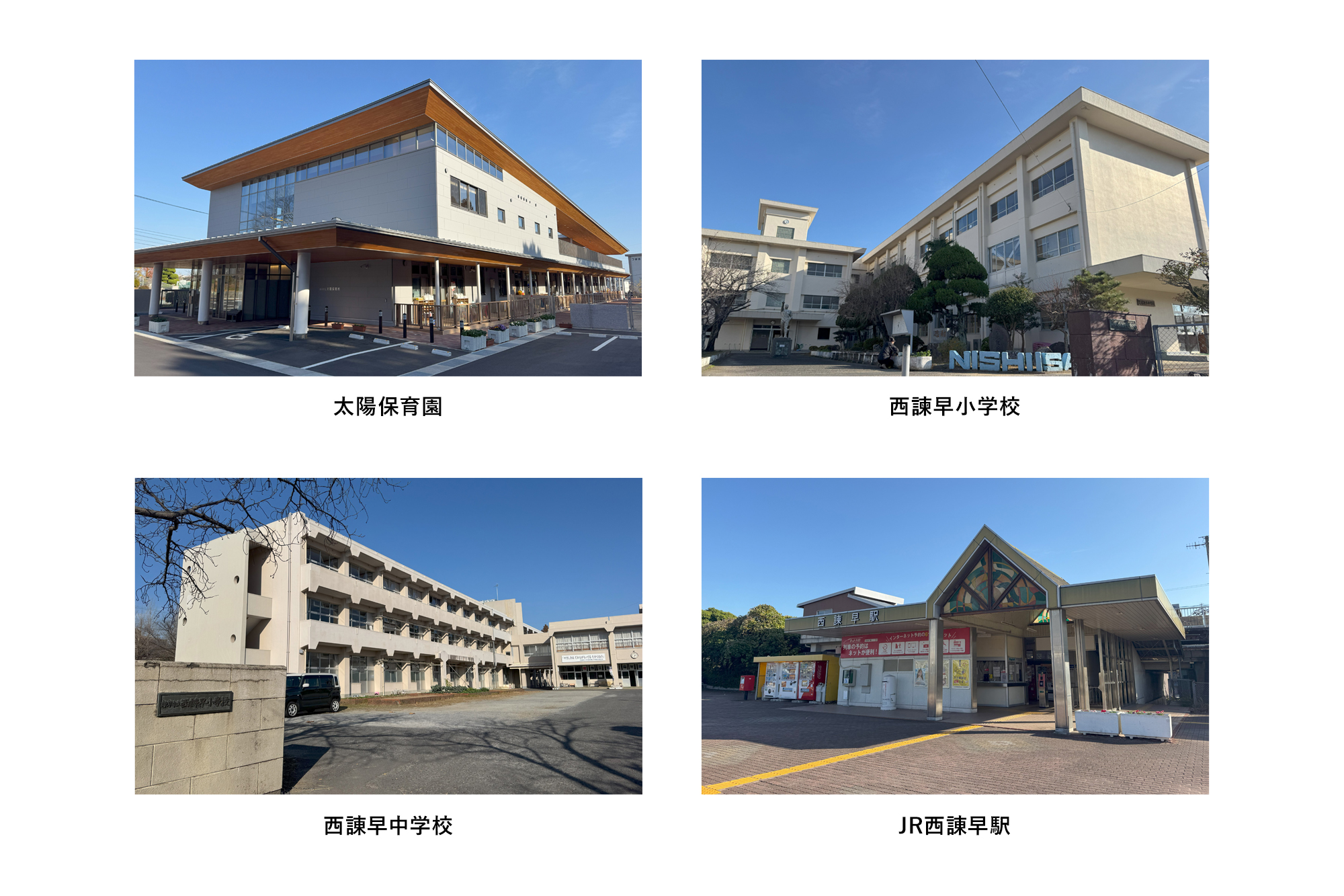 西諫早小学校まで502m(徒歩7分)、西諫早中学校まで875m(徒歩11分)、ばらの幼稚園まで177m(徒歩3分)、星の子保育園まで204m(徒歩3分)、太陽保育園まで850m(徒歩11分)