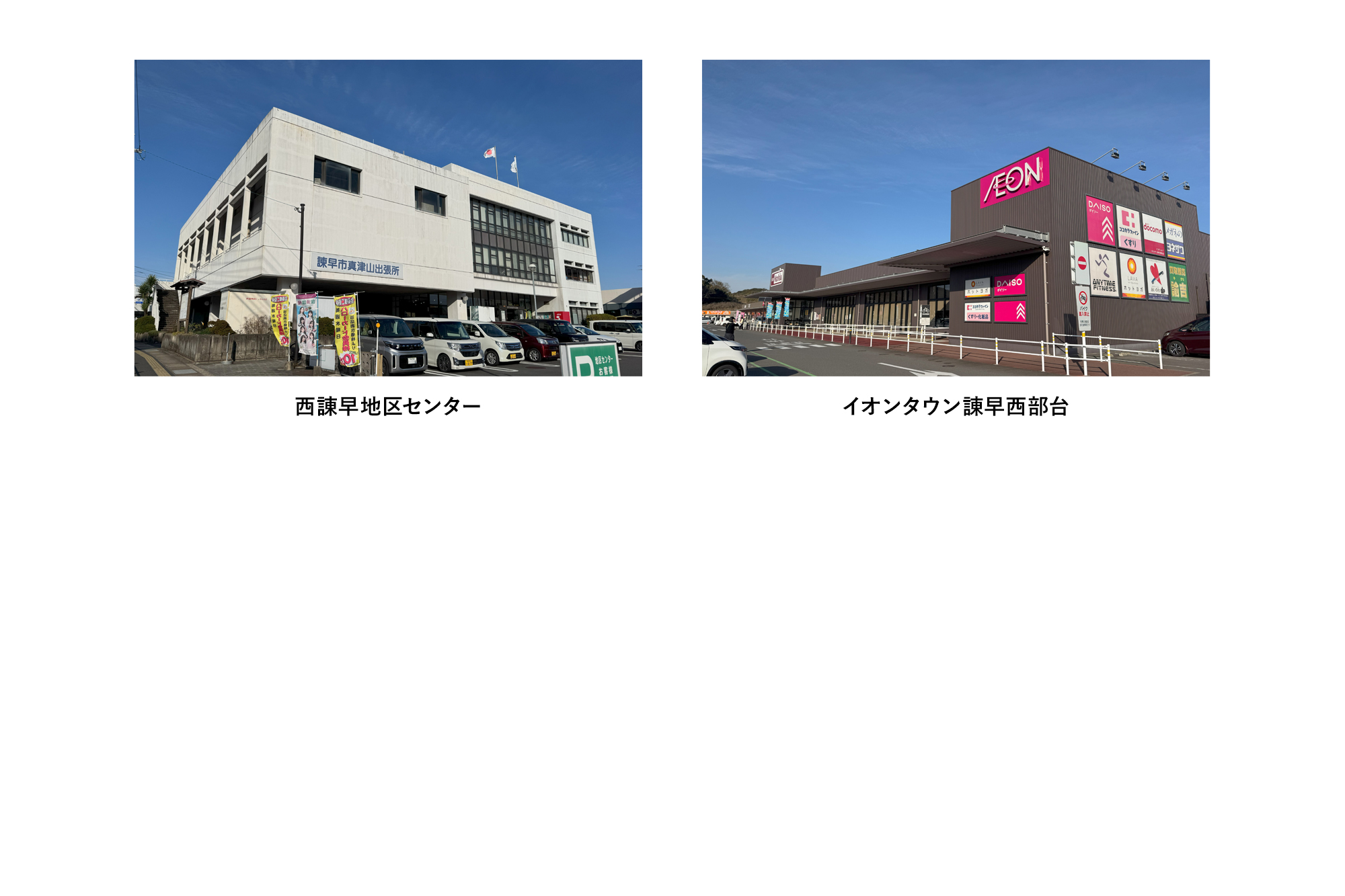 マックスバリュ諫早西部台店まで1.1km(徒歩14分)、イオンタウン諫早西部台まで1.1km(徒歩14分)、西諌早地区センターまで400m(徒歩5分)、ファミリーマート諫早真崎町店まで809m(徒歩11分)、セブンイレブン諫早小船越町店まで842m(徒歩11分)