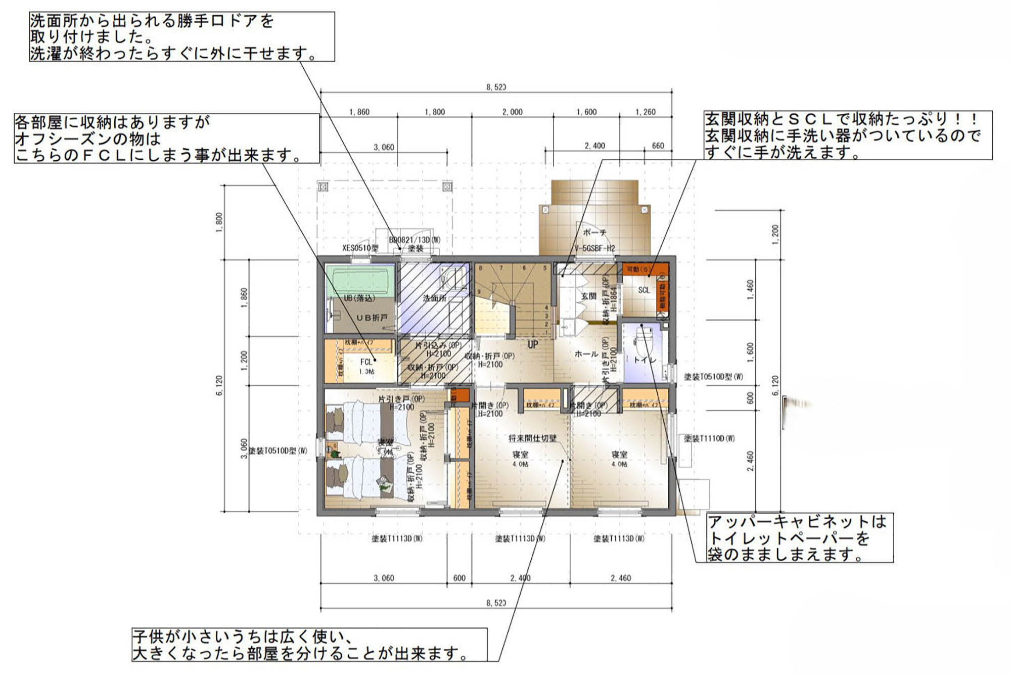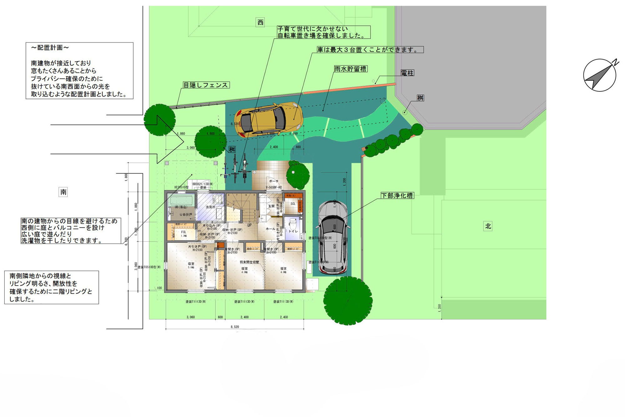 | 設備 | 電気、上水道、浄化槽、照明、カーテン、エアコン、IHクッキングヒーター、食洗器、エコキュート、熱交換型換気システム |