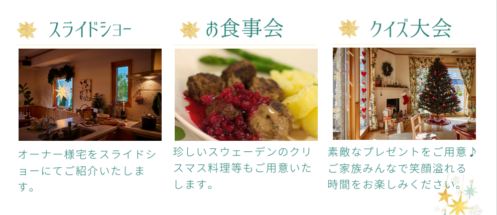 北欧料理や、クイズ大会、素敵なプレゼントをご用意しております。