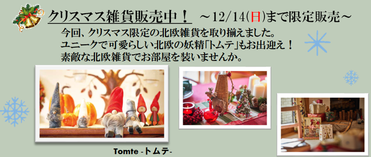 また、この時期だけ北欧クリスマス雑貨を取り寄せております。こちらもぜひご覧にいらしてください♪