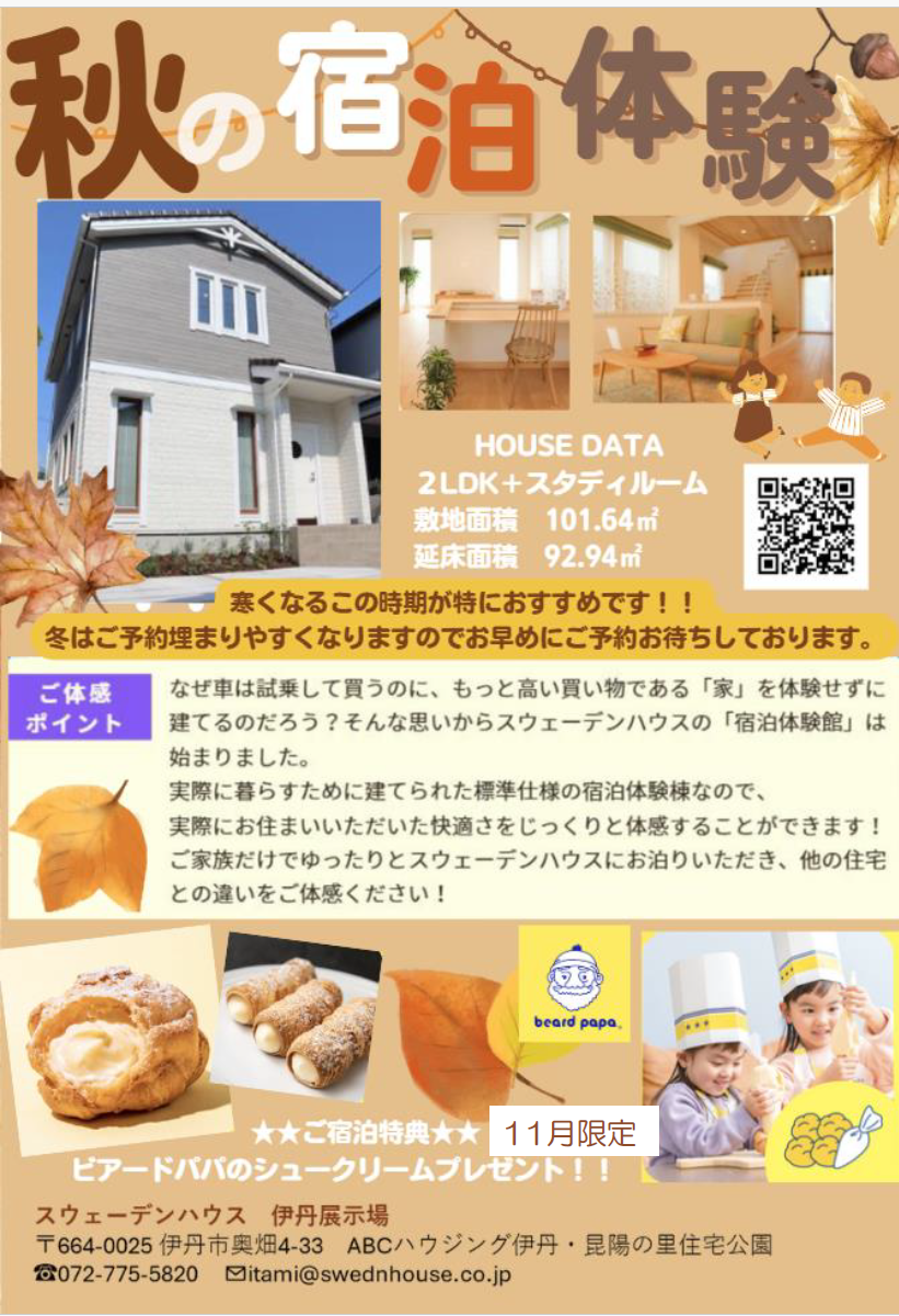 ご家族だけでゆったりとスウェーデンハウスにお泊りいただき、ほかの住宅との違いをご体感ください!