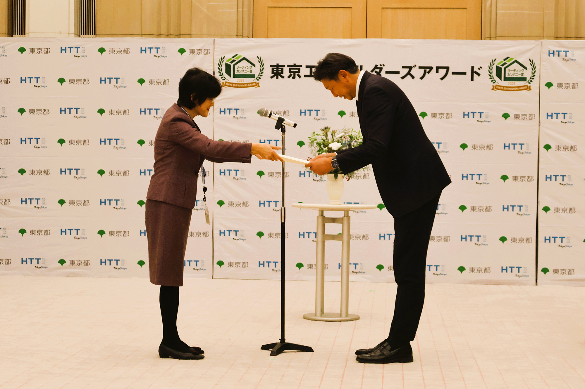 2025年11月27日、都庁第一本庁舎で行われた表彰式において、小池都知事、須藤環境局局長より、当社が表彰されました。