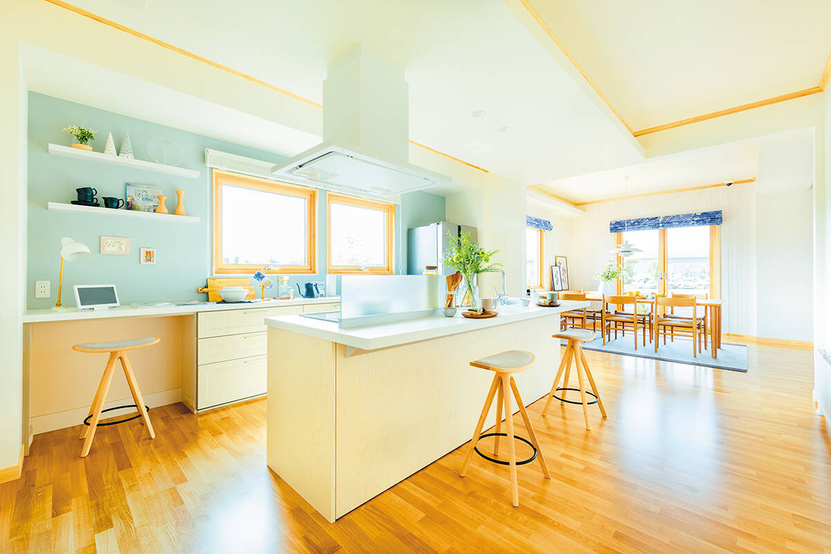 ダイニングを生活動線の中心と考え、家族と友人など人々が集う場所として最適な空間を提案いたします。またIoT家電を設置し、住性能と最新の住宅設備を併せ持ったスウェーデンハウスの新しい生活空間をご体感ください。